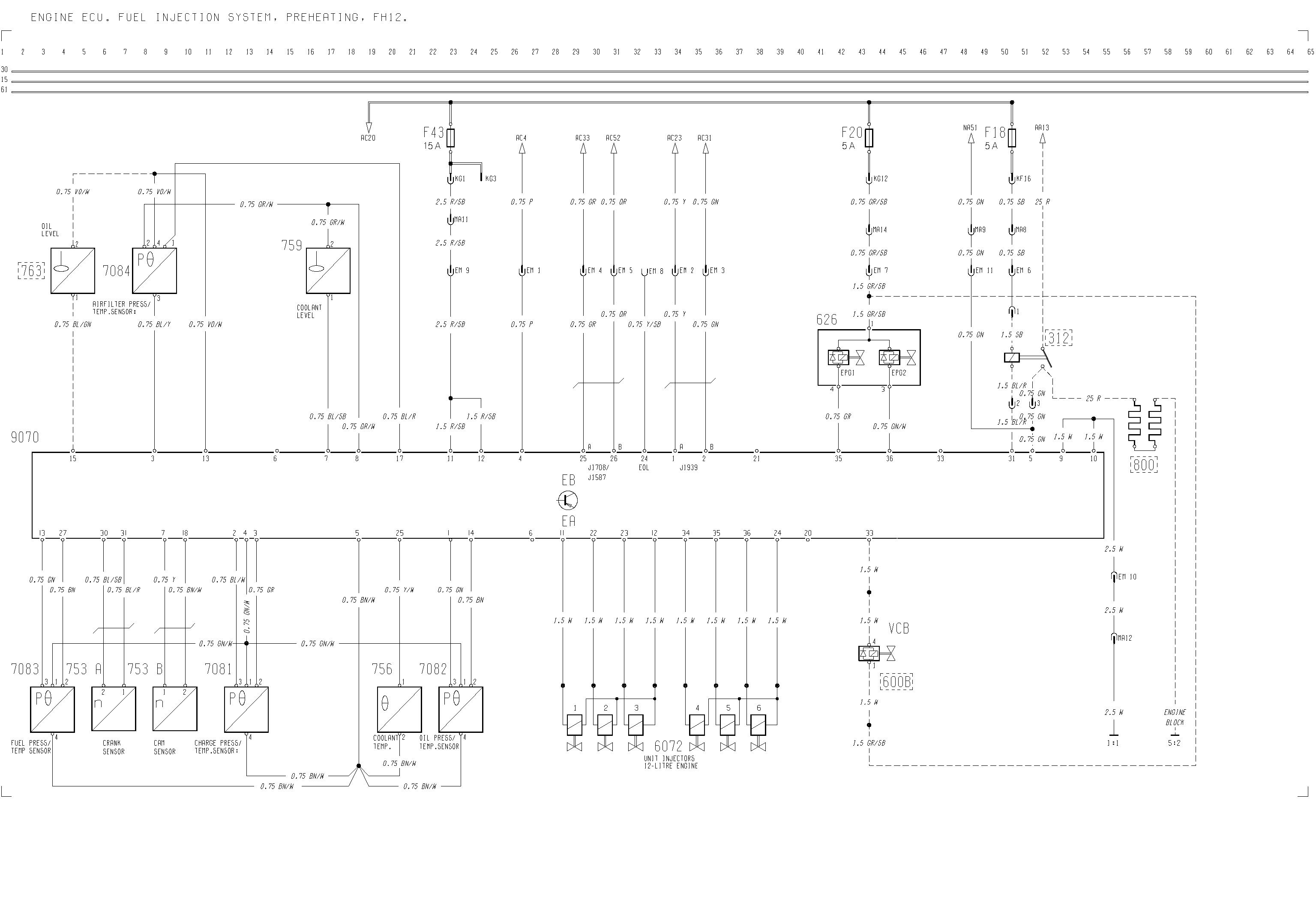 Volvo F12 – wiring diagram – engine ecu, fuel injection, preheating