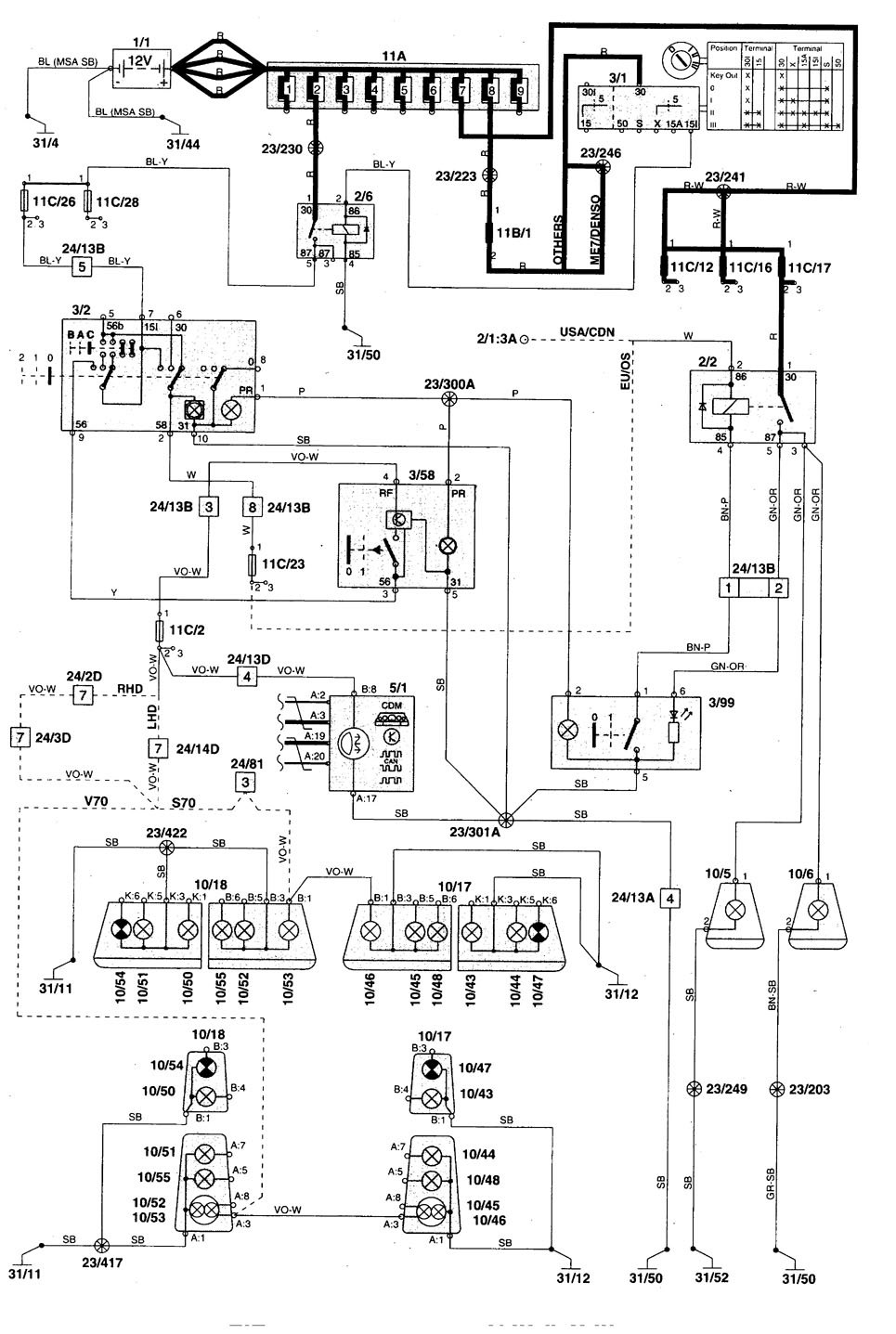 Volvo V70 (1998 – 1999) – wiring diagrams – fog lamps