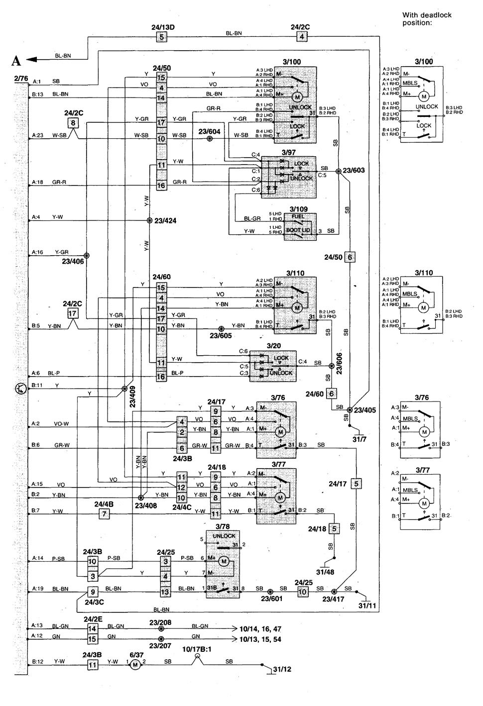 Volvo V70 – wiring diagram – power locks (part 2)