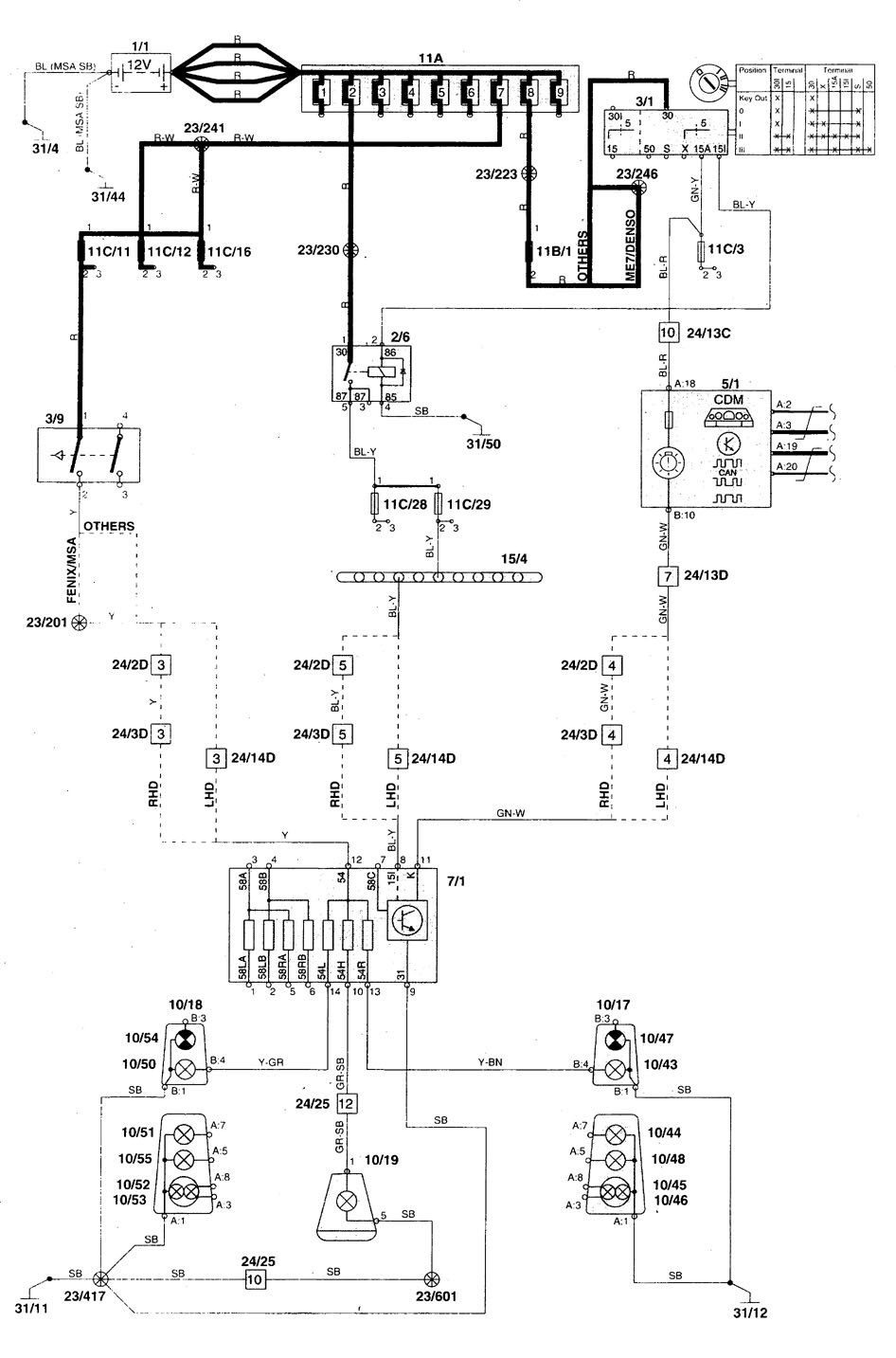 Volvo V70 (1998 – 1999) – wiring diagrams – stop lamp