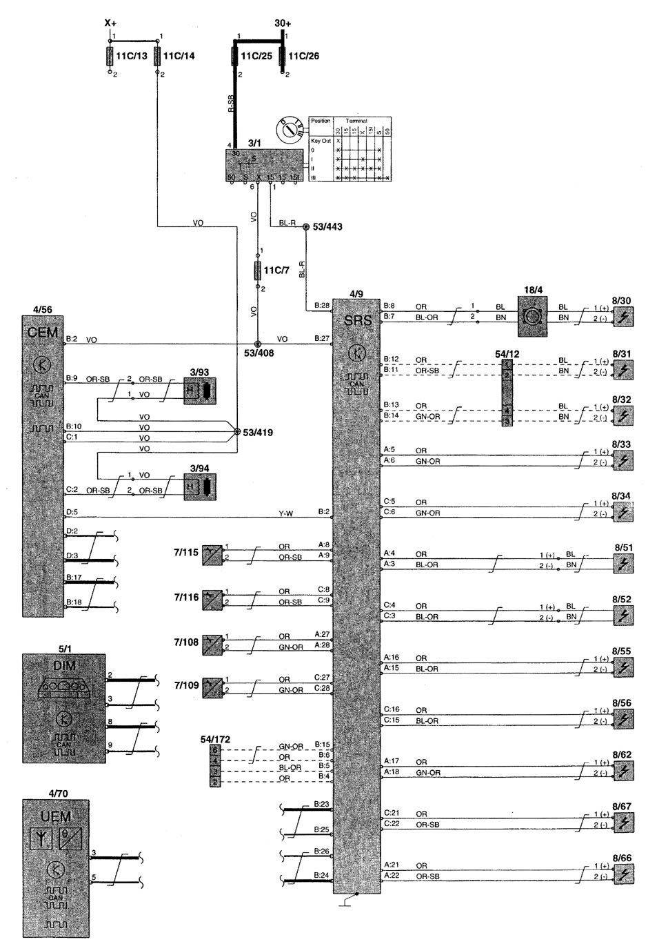 Volvo V70 (2000) – wiring diagrams – air bags