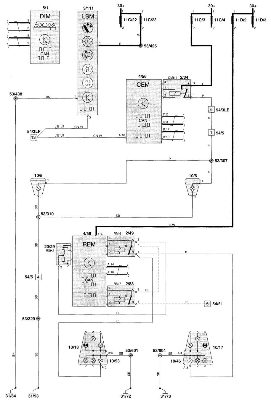 Volvo V70 (2000) – wiring diagrams – fog lamps