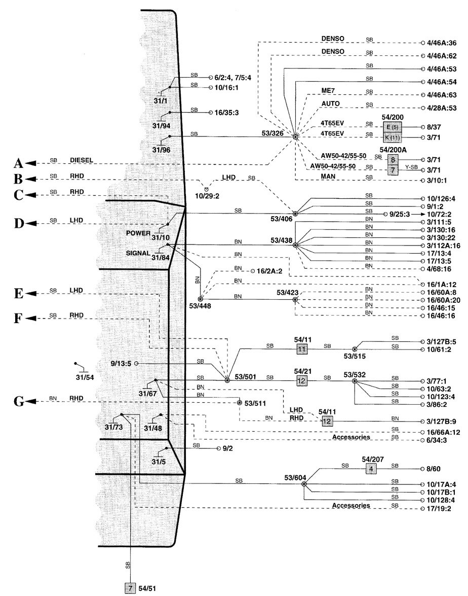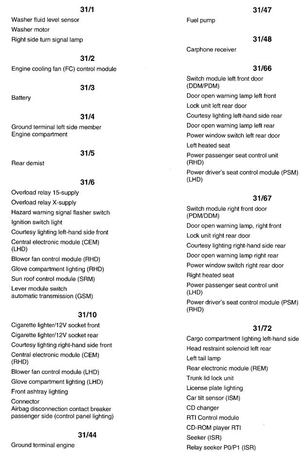 Volvo V70 (2000) – wiring diagrams – ground distribution