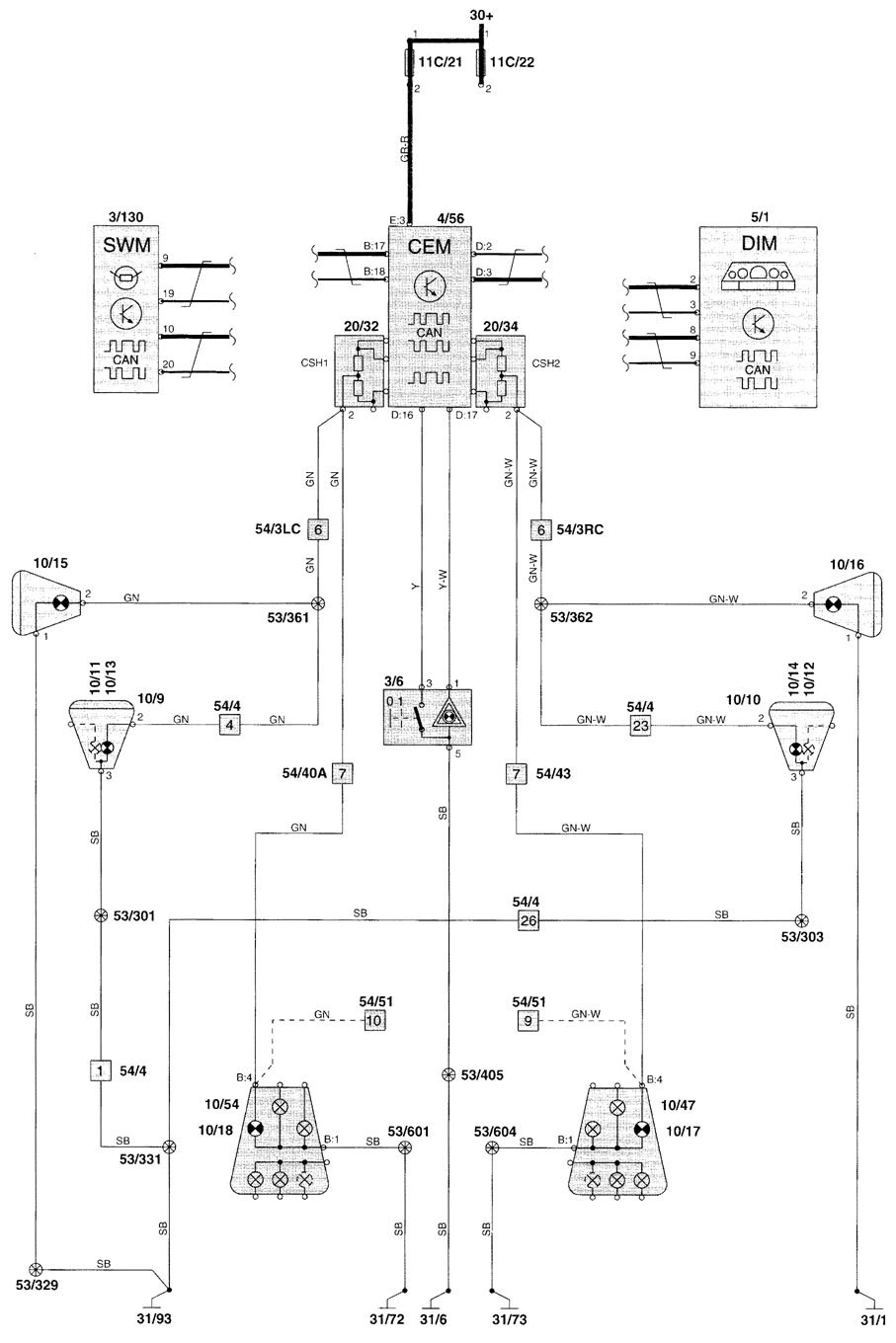 Volvo V70 (2000) – wiring diagrams – hazard lamps
