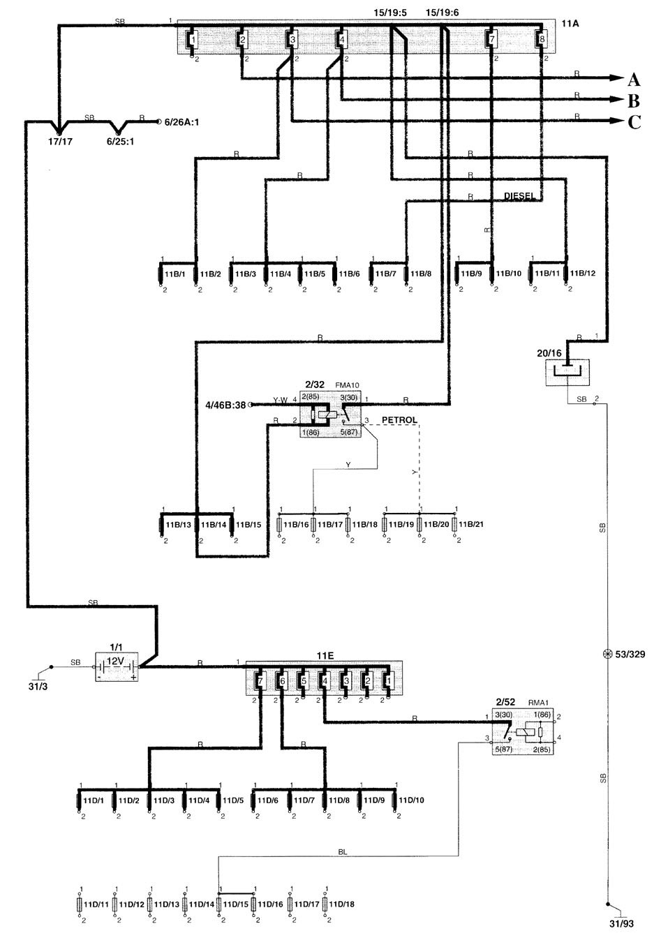 Volvo V70 (2000) – wiring diagrams – power distribution