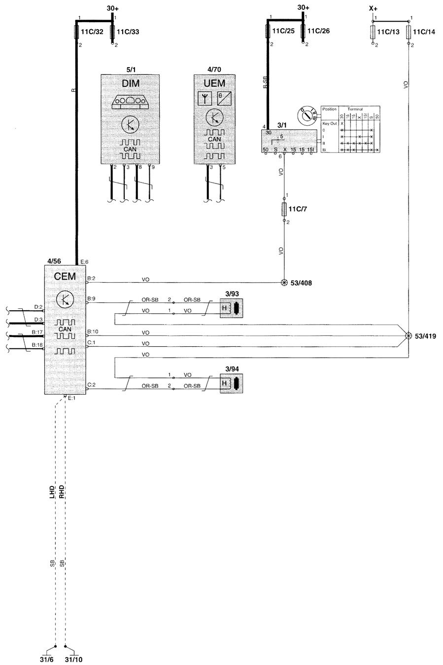 Volvo V70 (2000) – wiring diagrams – seat belt warning