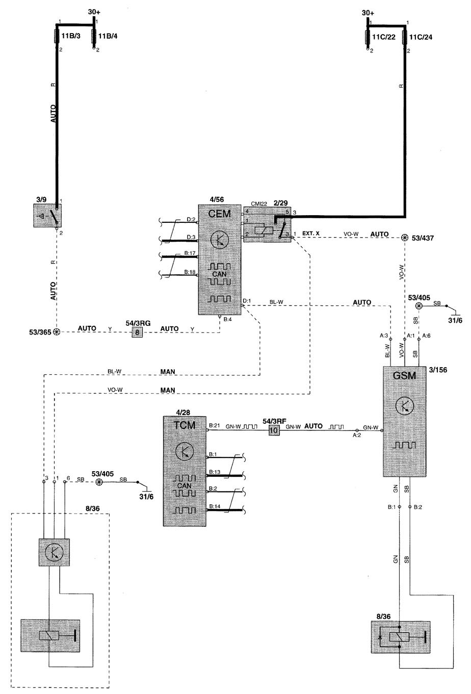 Volvo V70 (2000) – wiring diagrams – shift interlock