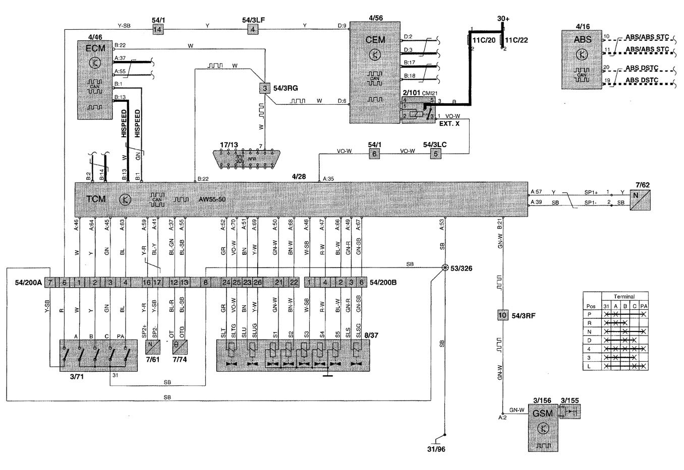 Volvo V70 (2000) – wiring diagrams – transmission controls