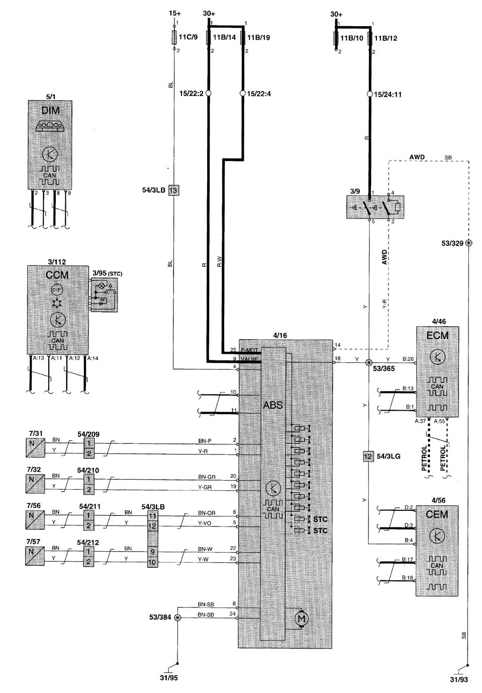 Volvo V70 (2001) – wiring diagrams – brake controls