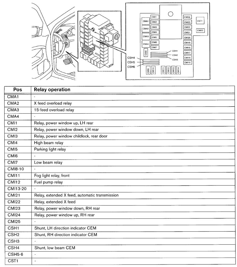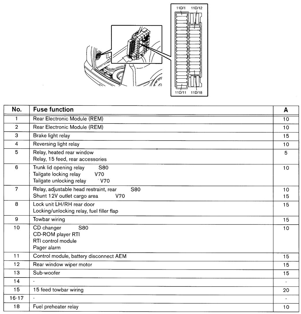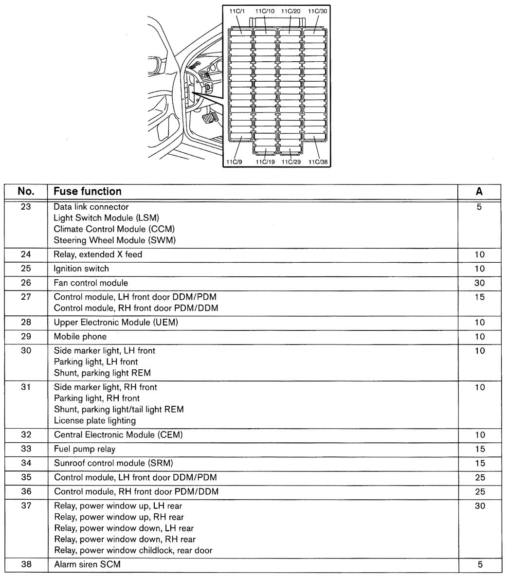 Volvo V70 (2001) – wiring diagrams – fuse panel