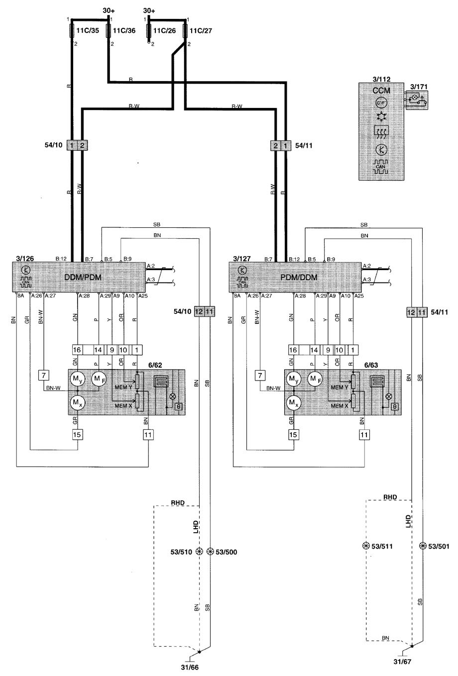 Volvo V70 (2001 – 2002) – wiring diagrams – power mirrors
