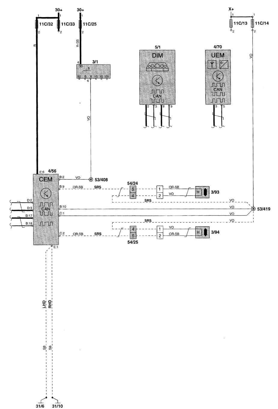 Volvo V70 (2001) – wiring diagrams – seat belt warning