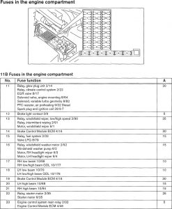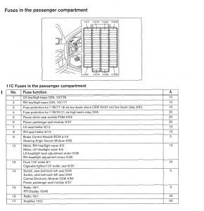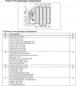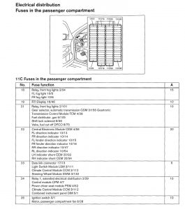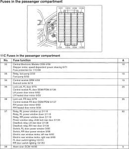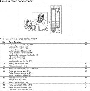 Volvo V70 – wiring diagram – fuse panel (part 1)