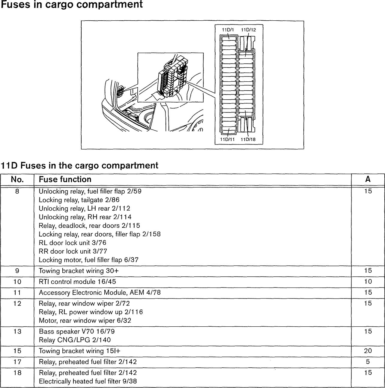Volvo V70 (2002) – wiring diagrams – fuse panel