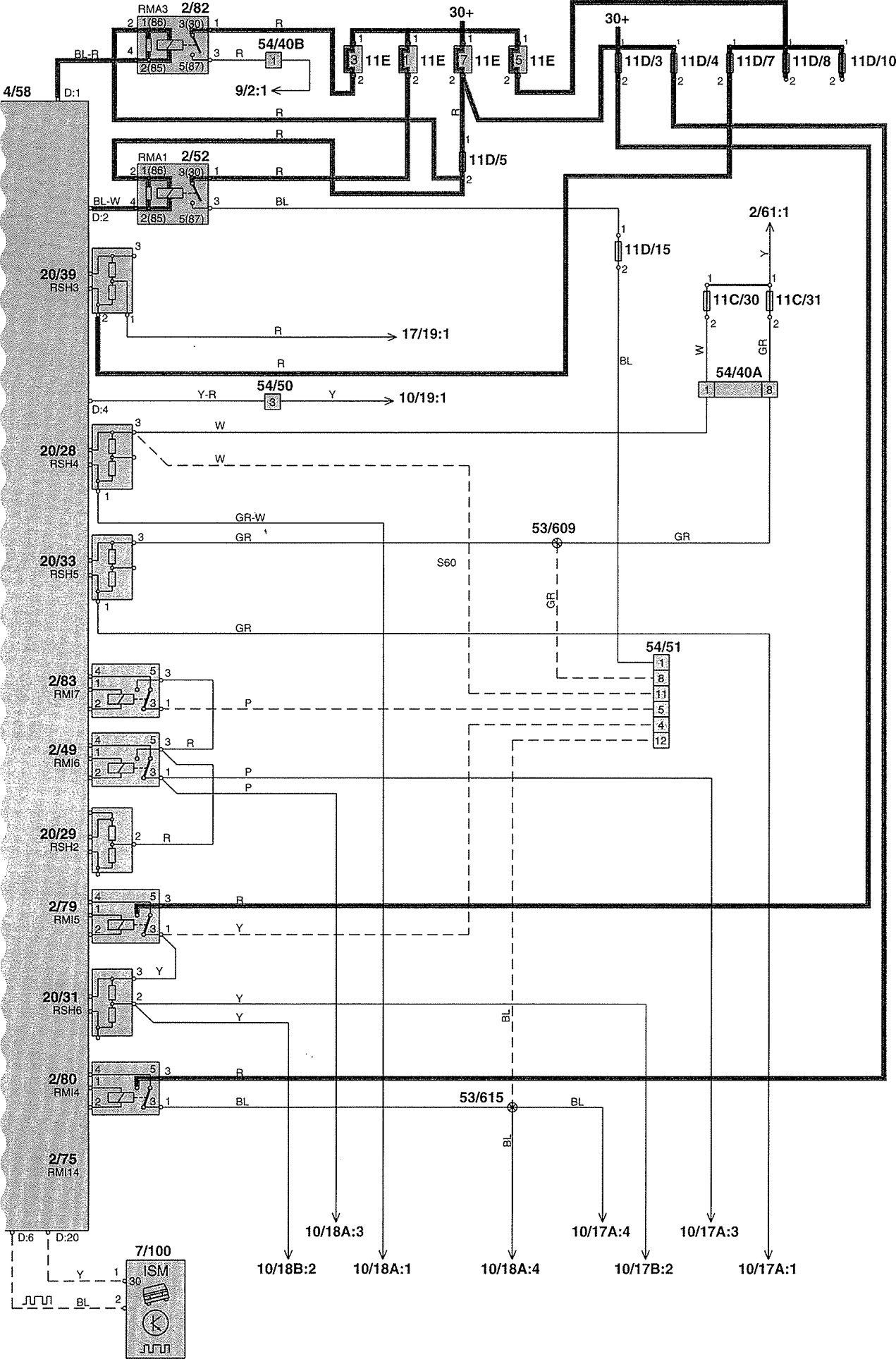 Volvo V70 (2002) – wiring diagrams – power distribution