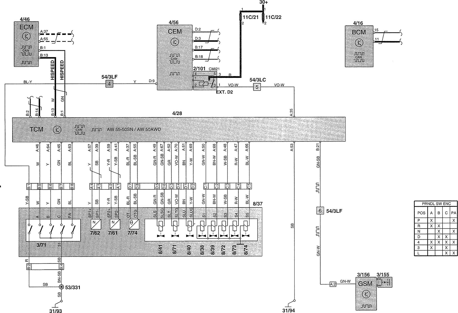Volvo V70 (2002) – wiring diagrams – transmission controls